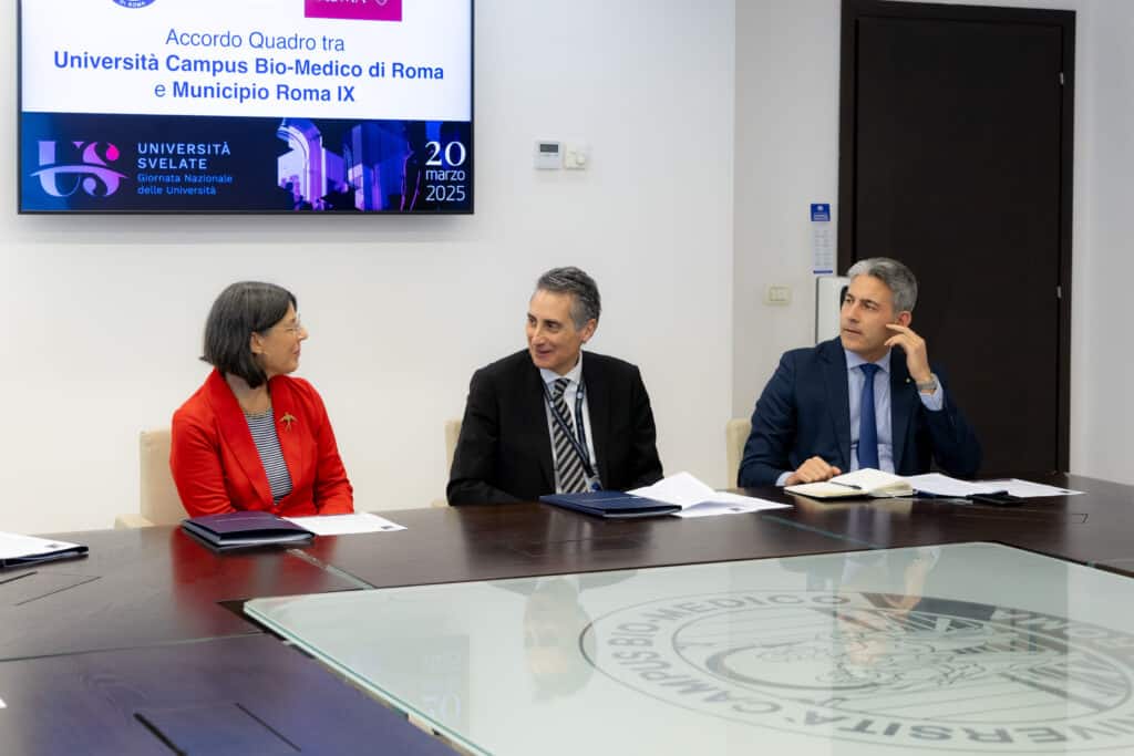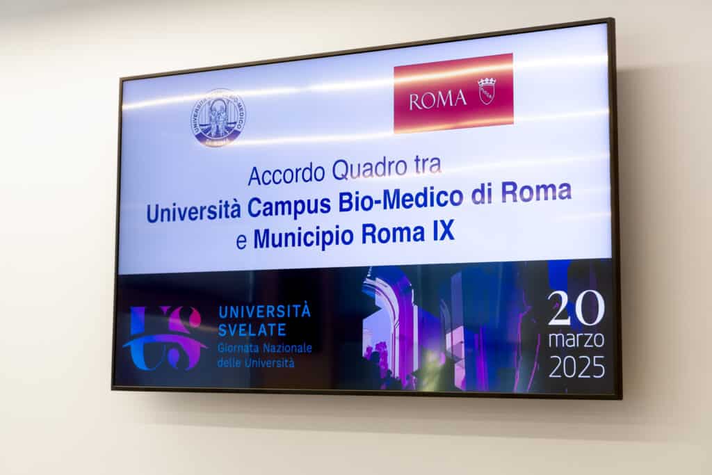 Giovedì 20 marzo 2025, l'Università Campus Bio-Medico di Roma ha preso parte alla seconda edizione della Giornata Nazionale delle Università, promossa dalla Conferenza dei Rettori delle Università Italiane (CRUI) e patrocinata dal Ministero dell'Università e della Ricerca. La giornata, denominata "Università Svelate", ha messo in luce il ruolo delle città universitarie come motori di innovazione e coesione sociale, rafforzando il legame tra atenei e territori. In questa occasione, UCBM ha siglato un accordo quadro con il Municipio Roma IX di Roma Capitale, con l'obiettivo di sviluppare attività formative in linea con il tema della giornata.