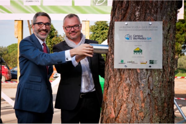 Sempre in occasione della cerimonia è stato infine illustrato anche il Protocollo di Intesa firmato con Wolf System (con l’amministratore delegato Kurt Schöpfer), l’Associazione Lignius (con il Presidente Johann Waldner), Legambiente (con i responsabili Vanessa Pallucchi e Roberto Scacchi) e l’Ente Regionale RomaNatura (con il Commissario Straordinario Maurizio Gubbiotti). La posa della prima pietra dell'asilo rappresenta infatti il primo step di un progetto di più ampio respiro che, attraverso la sottoscrizione del Protocollo d’Intesa ‘Carta dell’eco-sostenibilità per l’edilizia scolastica e i servizi all’infanzia’, promuoverà sul territorio la diffusione della bio-edilizia, dell’efficienza energetica e della sicurezza per gli edifici scolastici, e costituisce un laboratorio innovativo di sostenibilità ambientale e sociale orientato anche alla formazione e promozione di corretti stili di vita nelle nuove generazioni.