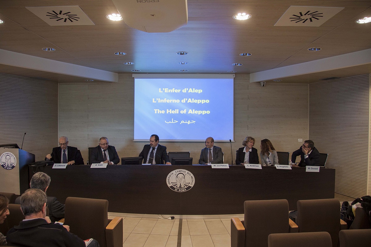 Emile Katti è un chirurgo ortopedico, lavora da 26 anni in Siria dove, insieme ad alcuni religiosi francescani, ha fondato l’ospedale che oggi conta 65 posti letto e la cui équipe – ci tiene a sottolineare – “è composta da operatori di confessione cristiana e musulmana, rappresentanti di tutto il mosaico etnico e sociale siriano”. È un racconto costellato di immagini quello che il medico rivolge a studenti, ricercatori e docenti del Corso di laurea magistrale in Medicina e chirurgia dell’Università Campus Bio-Medico di Roma, all’interno del convegno del 28 novembre dedicato alle popolazioni fragili.