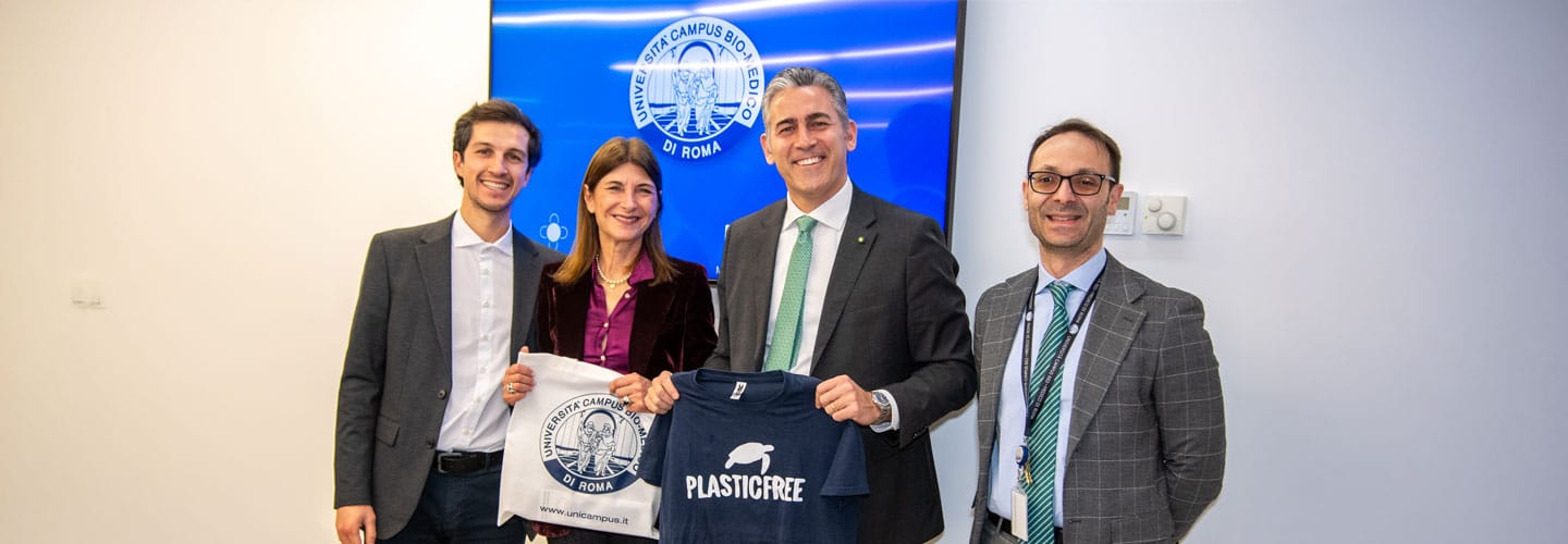 La collaborazione tra l’Università e Plastic Free Onlus si inserisce in un percorso avviato da diversi anni dall’Ateneo sul fronte della sostenibilità ambientale. A conferma di questo impegno, nell'ambito della campagna “That’s Life”, l’Università ha donato a tutti gli studenti borracce riutilizzabili, promuovendo uno stile di vita attento alla sostenibilità ambientale a partire dalle piccole scelte quotidiane. Parallelamente, sono stati installati all’interno dell’Ateneo distributori di acqua microfiltrata, con l’obiettivo di ridurre l’utilizzo della plastica monouso. Più di recente UCBM ha adottato al suo interno il Sistema di Gestione Ambientale con Certificazione ISO 14001 ed è inoltre membro della “Rete delle Università per lo Sviluppo Sostenibile” (RUS), promossa dalla CRUI.