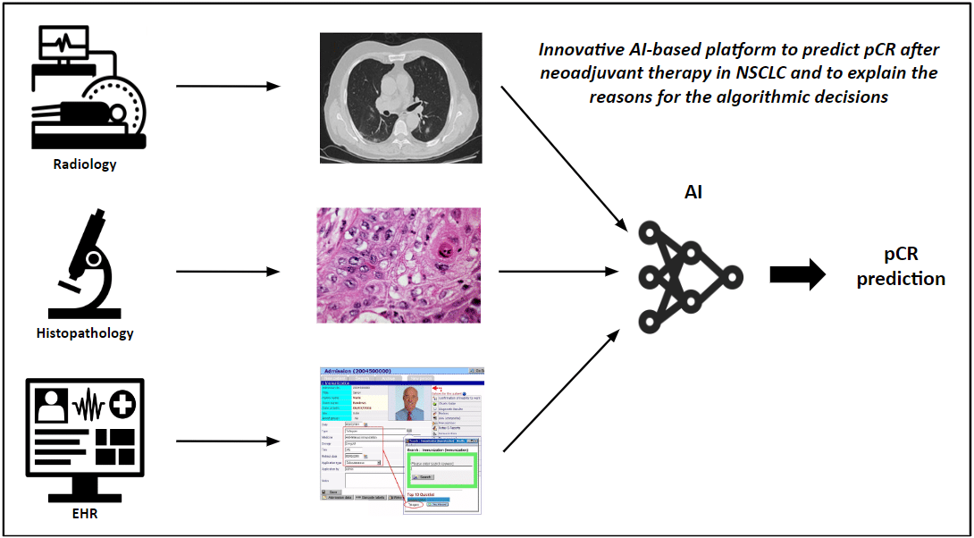 The fundamental concept underlying PICTURE is that a multimodal representation of patients’ health status grasped by radiological images, histology images, cytology and molecular data, along with Electronic Health Records (EHRs) aligns consistently with the pCR. Therefore, exploiting the potential of artificial intelligence (AI) to integrate this heterogeneous medical data can provide accurate pCR prediction (Figure 1).